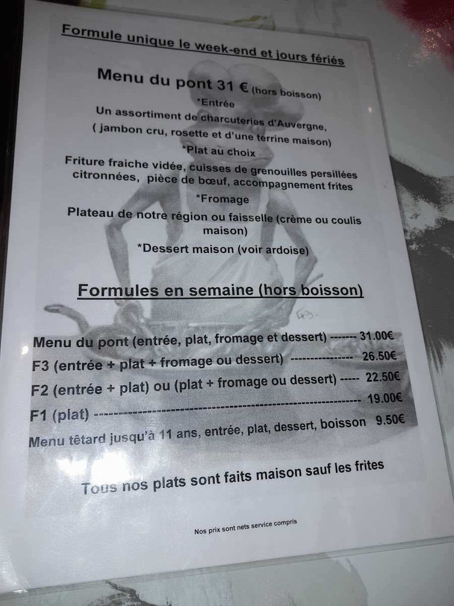 Nestled in the heart of Limons, France, Restaurant Du Pont offers a delightful culinary experience that celebrates local flavors. Renowned for its expertly prepared fritures and cuisses de grenouilles, the menu showcases a tantalizing blend of specialties and classic dishes. With a focus on fresh ingredients, patrons rave about the generous portions and the flavorful charcuterie assortments, which set the perfect stage for an unforgettable meal.